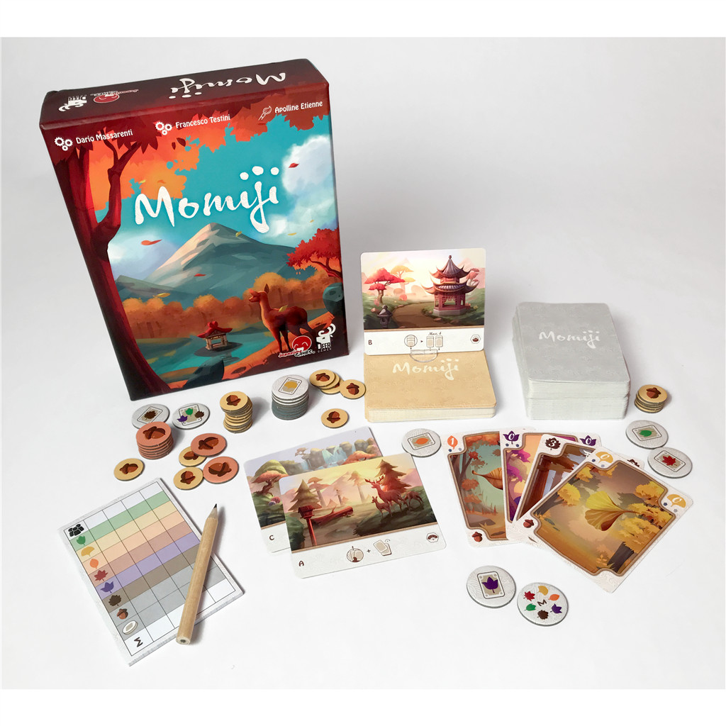 In Momiji, you must carefully manage your hand of cards to collect gorgeous autumn leaves as they fall from the trees of the Imperial Garden. Use the unique powers of the landscape to aid you as you pursue your goals and try to gather the most amazing collection before the last leaf falls!