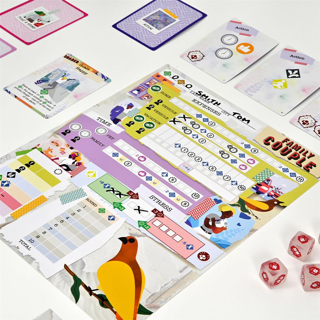 Balance Health, Knowledge, Social Skills, Finances, Time and even a little bit of luck to come out on top. After ten rounds, all players will score their Character and family sheets. The player with the most Life Achievement points wins!