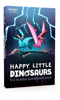 5-6 Player Expansion Pack: This Expansion Pack is designed to be added to the Happy Little Dinosaurs Base Game and expands the game to 5-6 players! Includes 50 cards, 2 Dinosaur player boards, and 2 Dinosaur meeples.