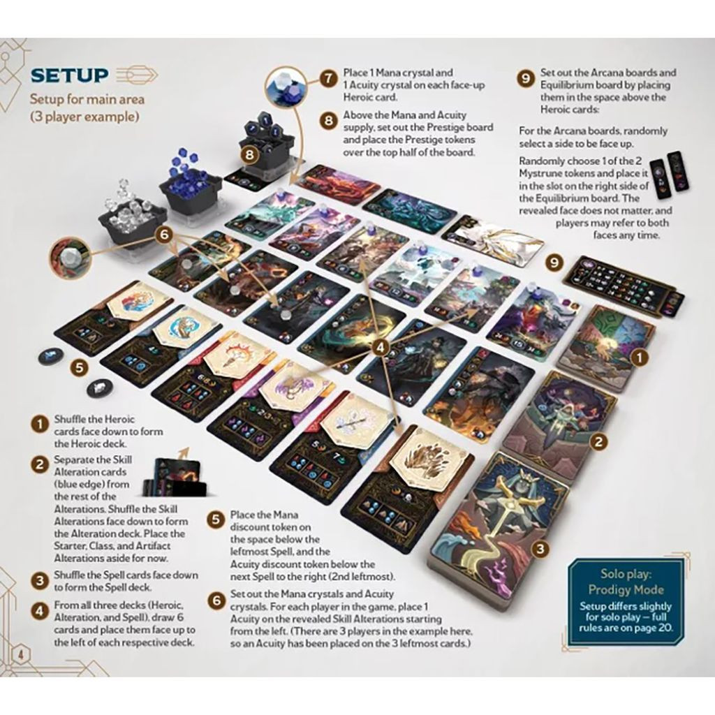 A Mercurial egy kártya- és kockajáték, melynek témája a varázslat, kombó- és motorépítő mechanikával. Tanulj mágikus átalakítási technikákat, hogy irányítsd az elemi kockáid káoszát, és használd ezeket az elemeket, hogy kisebb mágiákat kombinálj új és ismeretlen varázslatokká. Az egyesített varázslatok rombolást okozhatnak, életet adhatnak vissza, vagy valami többet – használd őket hősies tettekre, a szövetségeseidnek a veszélyes vadállatok legyőzésétől kezdve a Valanyr különös land eltévedt utazók megtalálásáig.
