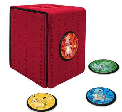 Collect, store, and personalize with the Alcove Click for Pokémon! The Alcove Click comes with four themed badges featuring Bulbasaur, Charmander, Squirtle and Pikachu. This Deck Box holds up to 100 standard size trading cards double-sleeved in Ultra PRO Deck Protector® sleeves, features a strong magnetic closure, and has dual thumb notches for easy access to your deck. Personalize your Alcove Click by popping on your favorite magnetic badges and replacing them with other badges. badges have a 1.5 in. diameter.