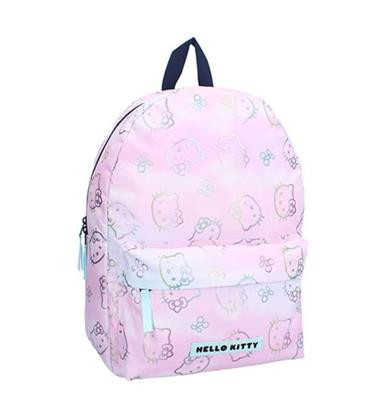 Explore the world of Hello Kitty with this stylish backpack! This pink backpack is perfect for all Hello Kitty fans. With one spacious main compartment and a handy front pocket, this backpack offers enough space to keep all your essentials organised. The backpack is decorated with an adorable cherry and Hello Kitty pattern, giving it a playful and charming look. Thanks to the adjustable shoulder straps, the bag is easily adjusted for optimal carrying comfort. Whether it's a day at school or a day out, this Hello Kitty bag is the perfect companion for all adventures!