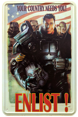 Jelentkezz!.. A te Country Needs You-d. Ez a fémtábla a Fallout disztópikus világából az ikonikus Toborzót ábrázolja.