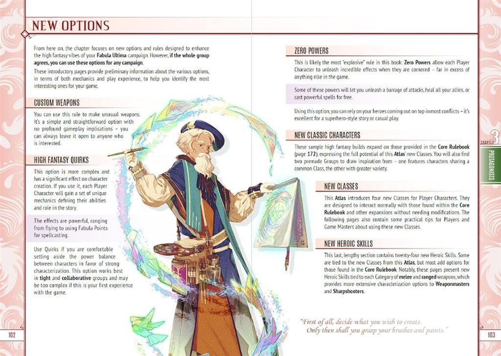 An epic journey will guide you beyond what you have ever imagined you could be. Destiny itself shall bow before the fires in your hearts! FABULA ULTIMA ATLAS: HIGH FANTASY will expand your Fabula Ultima games and guide you into a world of ancient mysteries, breathtaking views, incredible magic, and powerful beings. Like the heroes of legend and myth, your characters will start from humble origins and set off towards a glorious fate, eventually rising high enough to challenge the gods in true JRPG style! The 200-page, full colour softcover Fabula Ultima Atlas: High Fantasy features: