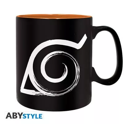 This Naruto Shippuden mug by ABYstyle represents the emblem of the village of Konoha and the seal used to imprison Kyubi in Naruto.