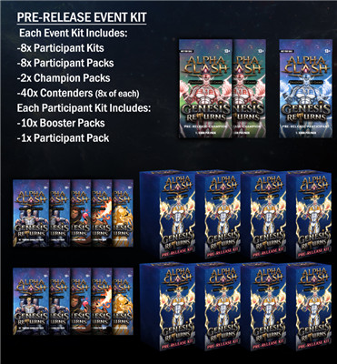 A Genesis Returns megjelenésével a Alpha Clash TCG rajongói élvezhetik a játékot és gyűjthetik kedvenc karaktereiket! Ez a játék a Alpha Clash regény- és képregénysorozathoz kapcsolódik, és az elkövetkező években folyamatosan új kártyacsomagokat és izgalmas történeteket fog kiadni.
