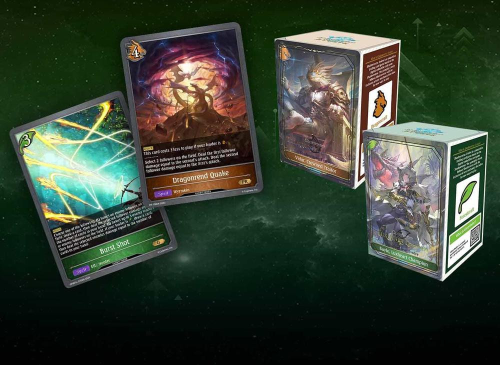 • The leader cards in this bundle do not contain IC chips. They will not be scannable with the Shadowverse: Evolve Sidekick app.