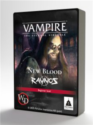 New Blood is a collection of 54-card preconstructed decks for introductory games of Vampire: The Eternal Struggle. These decks are simpler than tournament level decks, but showcase all the basic mechanics of the game. They are balanced, for a fun and exciting first try of Vampire: The Eternal Struggle. Some of the cards included are reprints and some are new for this set, all ready to mix with cards from other sets.